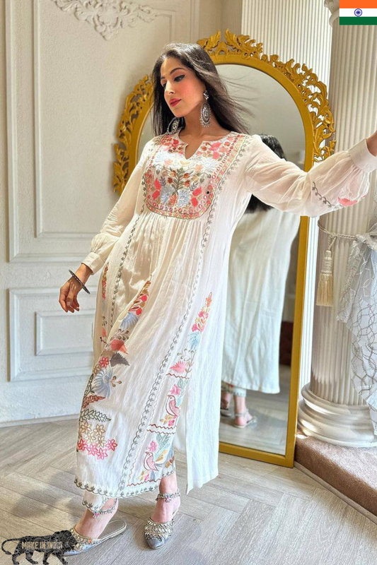 3-Piece Embroidered Set – Kurta, Plazo & Dupatta