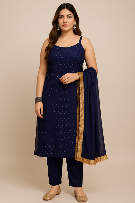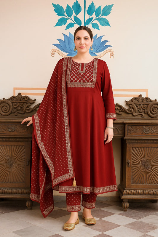 New Reyon Slub Embroidered Suit Set with Dupatta