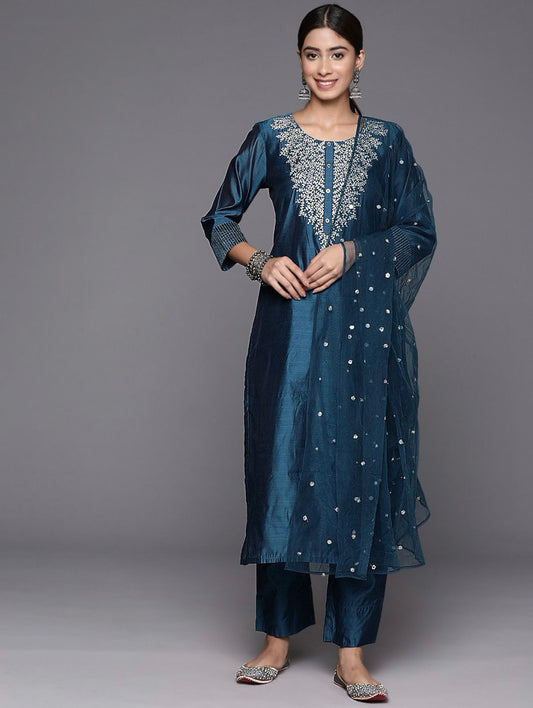 Sequins Embroidered Kurti Plazzo Dupatta Set