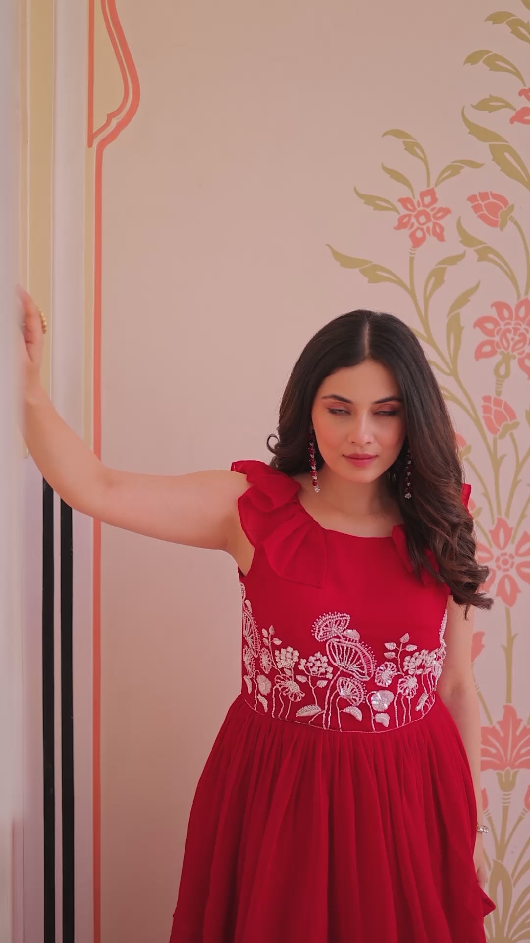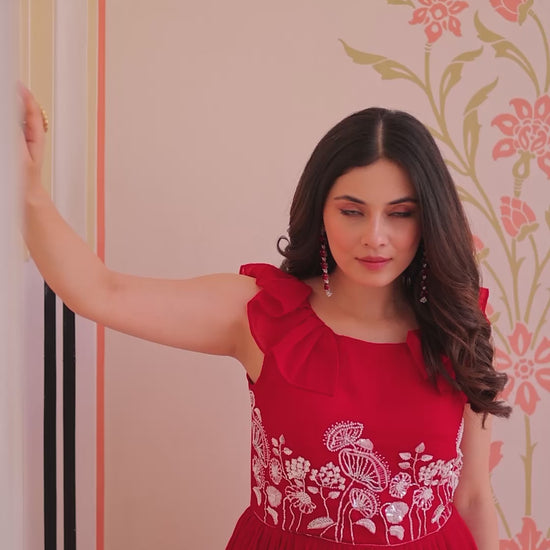 Presenting the Anaya Peplum Style Gown – a stylish designer wear with a modern silhouette, perfect for festive and party occasions.