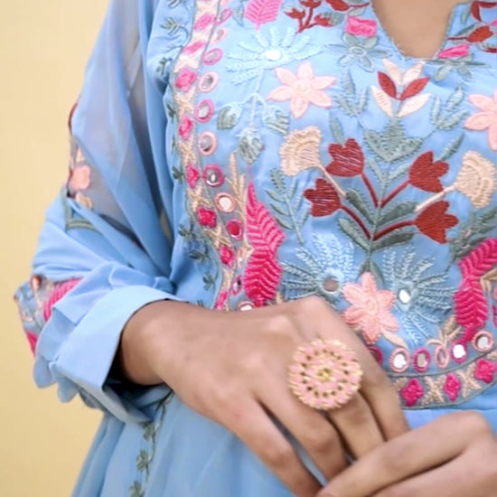 Embroidered Fox Georgette Kurti Plazzo Set with Dupatta ā S to 10XL