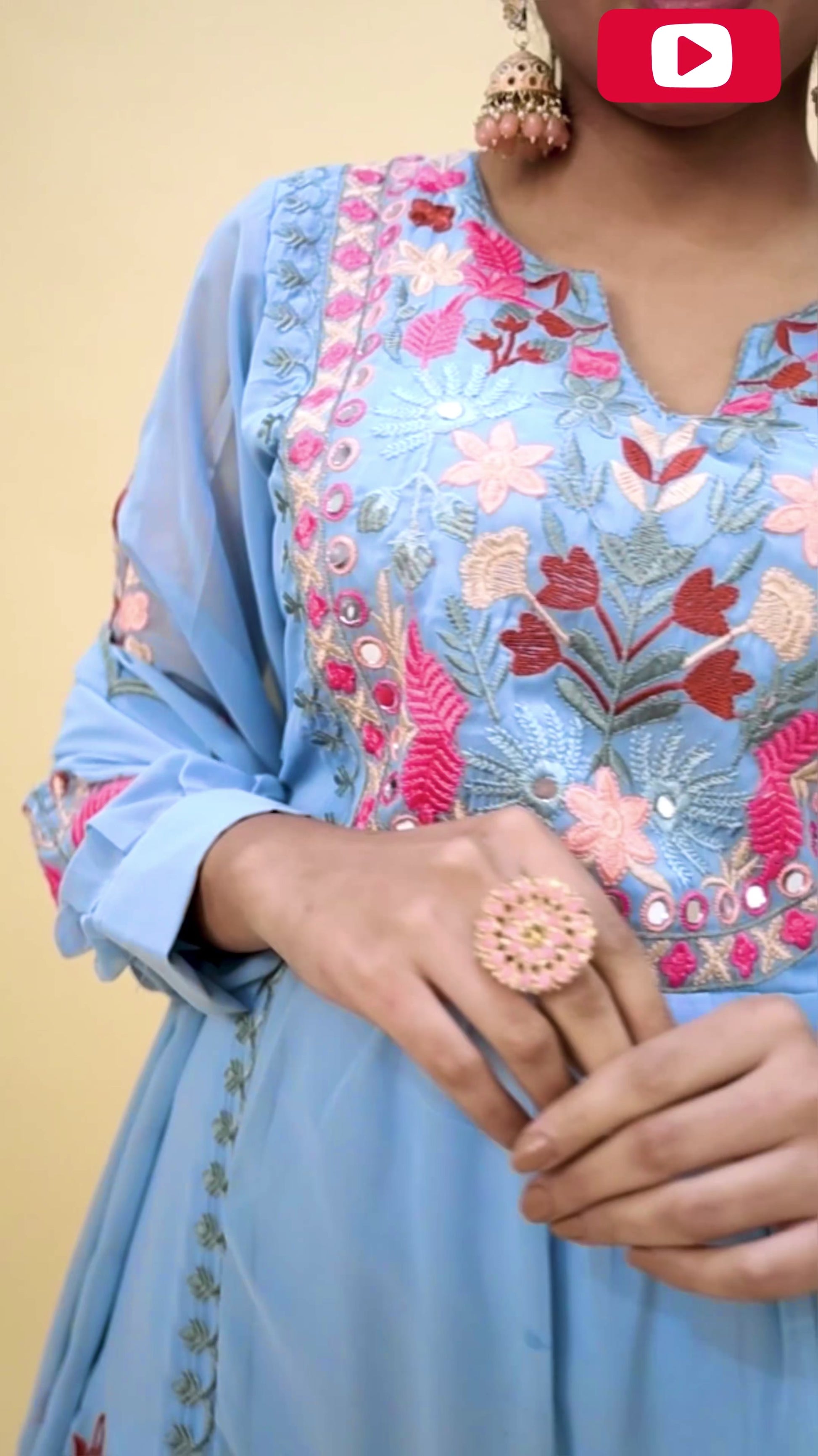 Kurti Plazzo 3 pcs Pair in premium fox georgette fabric with elegant embroidery work Perfect for party wear and festive occasions Designed for comfort and style this set is fully stitched and ready to wear Available in all sizes from XS to 10XL