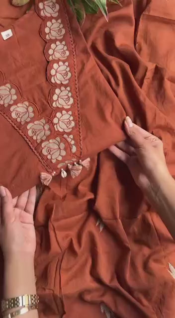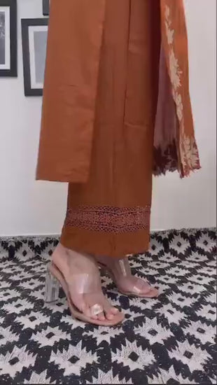 Bring home a perfect blend of elegance and everyday comfort with this beautiful 3-piece suit set. Crafted in soft and breathable Reyon Slub Cotton fabric, this outfit is designed for women who love to keep it stylish yet easygoing.