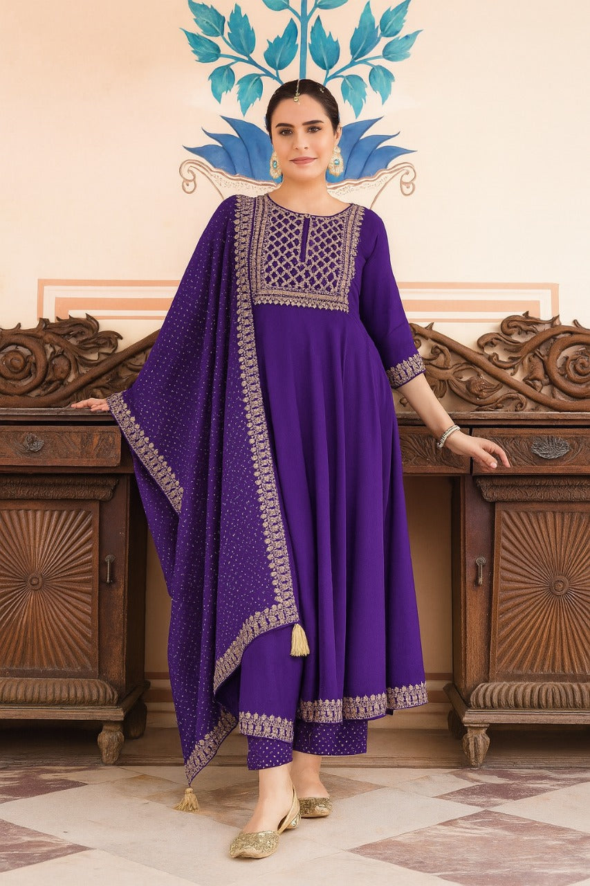Crafted from premium 14kg Heavy Reyon, this full-length suit set offers rich texture and all-day comfort. Available in 7 beautiful colors, it is ideal for both festive and classy everyday looks.