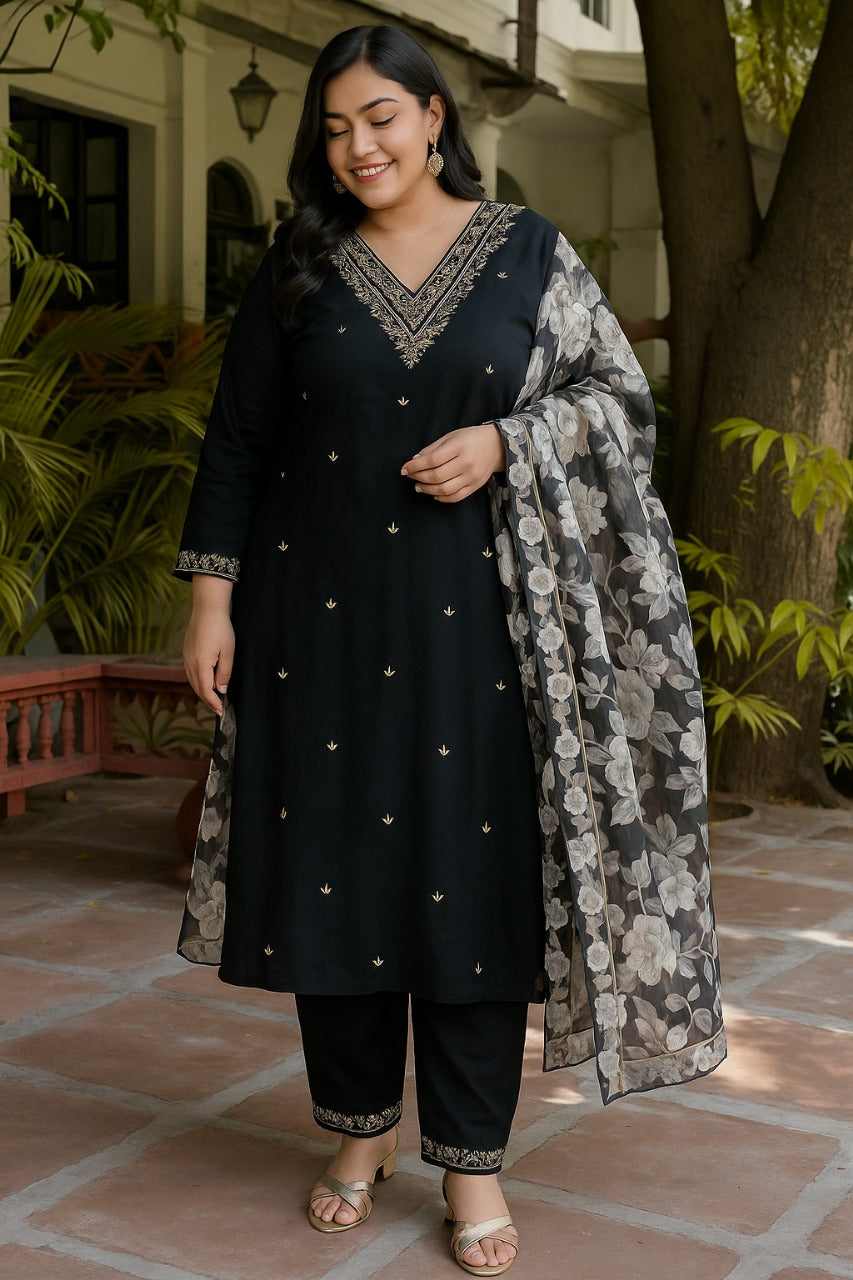 This premium suit set is made from 14kg Heavy Reyon and paired with a stylish Organza Dupatta featuring digital print and embroidery. Designed for elegance, comfort, and daily wear. Available in 4 beautiful colors.