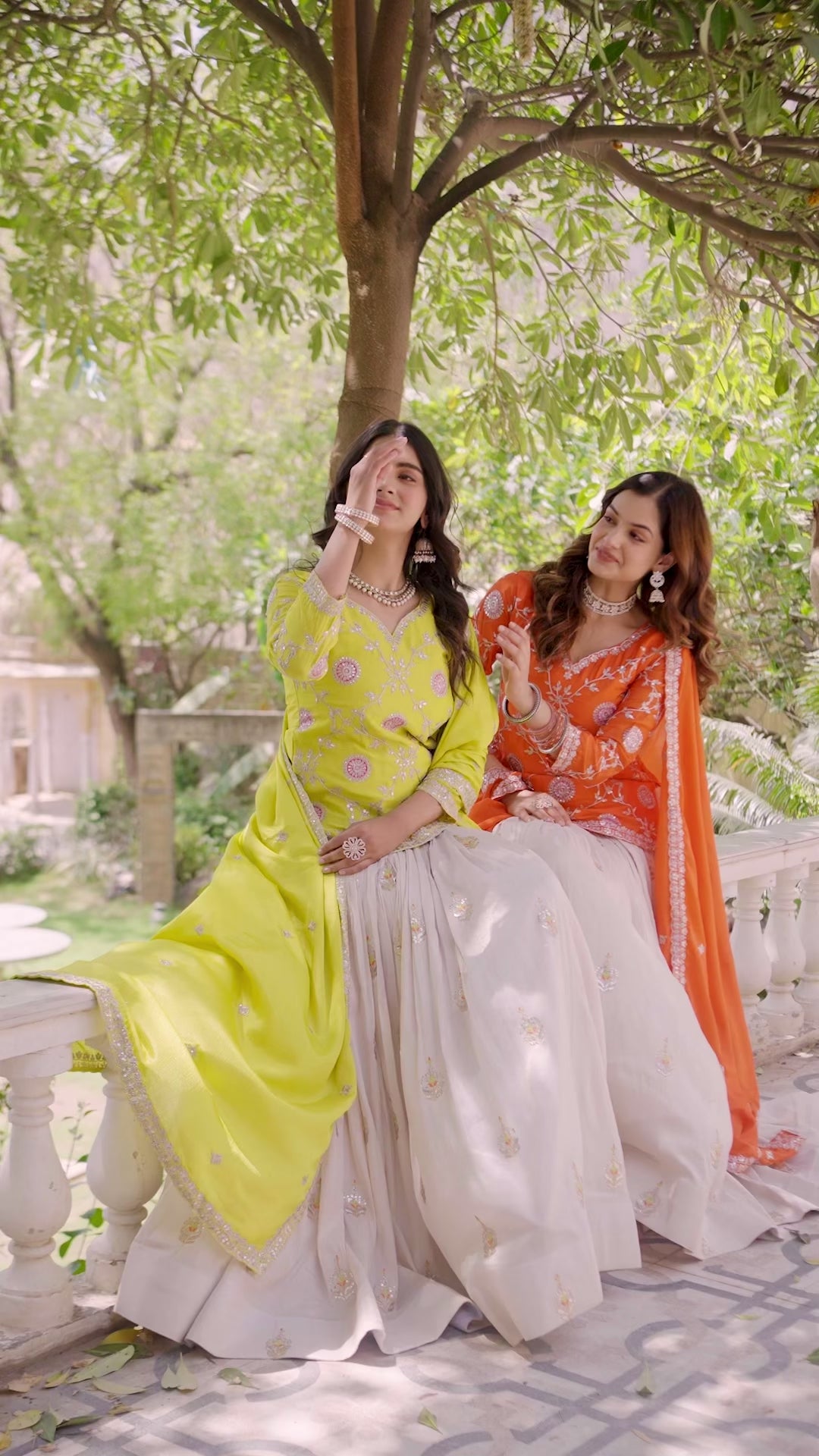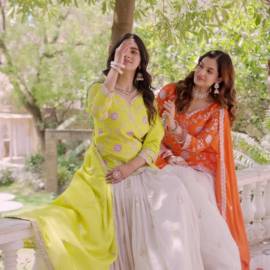 Embroidered Chinon Kurti Lehenga Dupatta Set