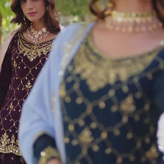 Sequins Embroidered Kurti Plazzo Dupatta Set